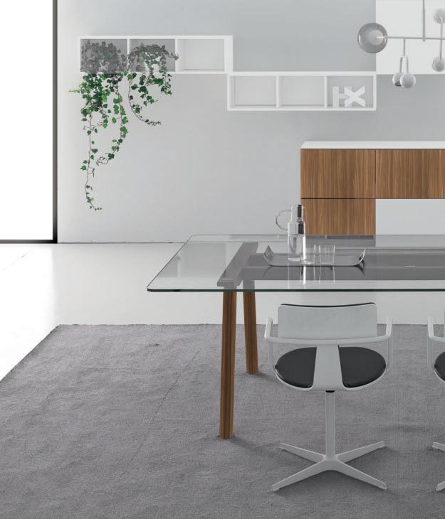 Meeting tables adaptable to each DVO operating series. The careful choice of materials embellishes and makes the “Meeting” environments current.