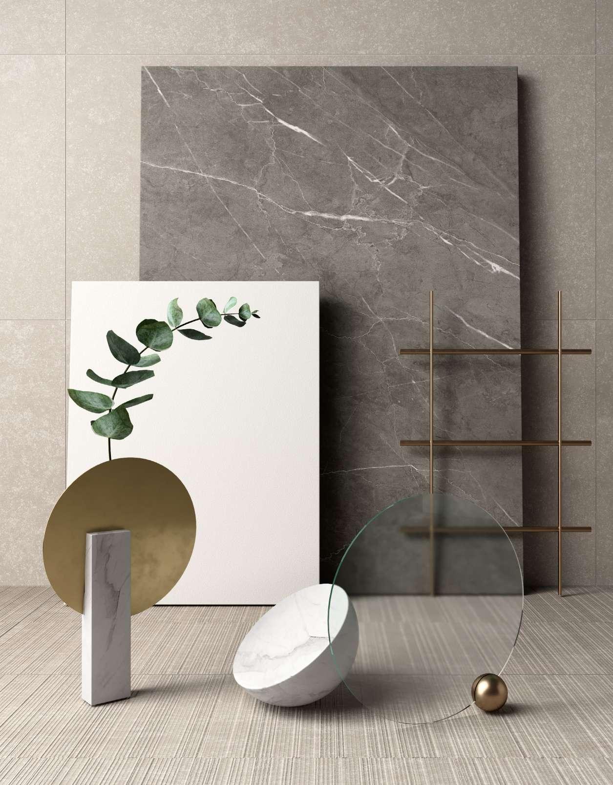 La combinaison de la structure chromée et de l’opacité du plateau Laminam ® Pietra Grey Naturale crée une combinaison intéressante entre esthétique et fonctionnalité, entre chaleur et attrait contemporain.