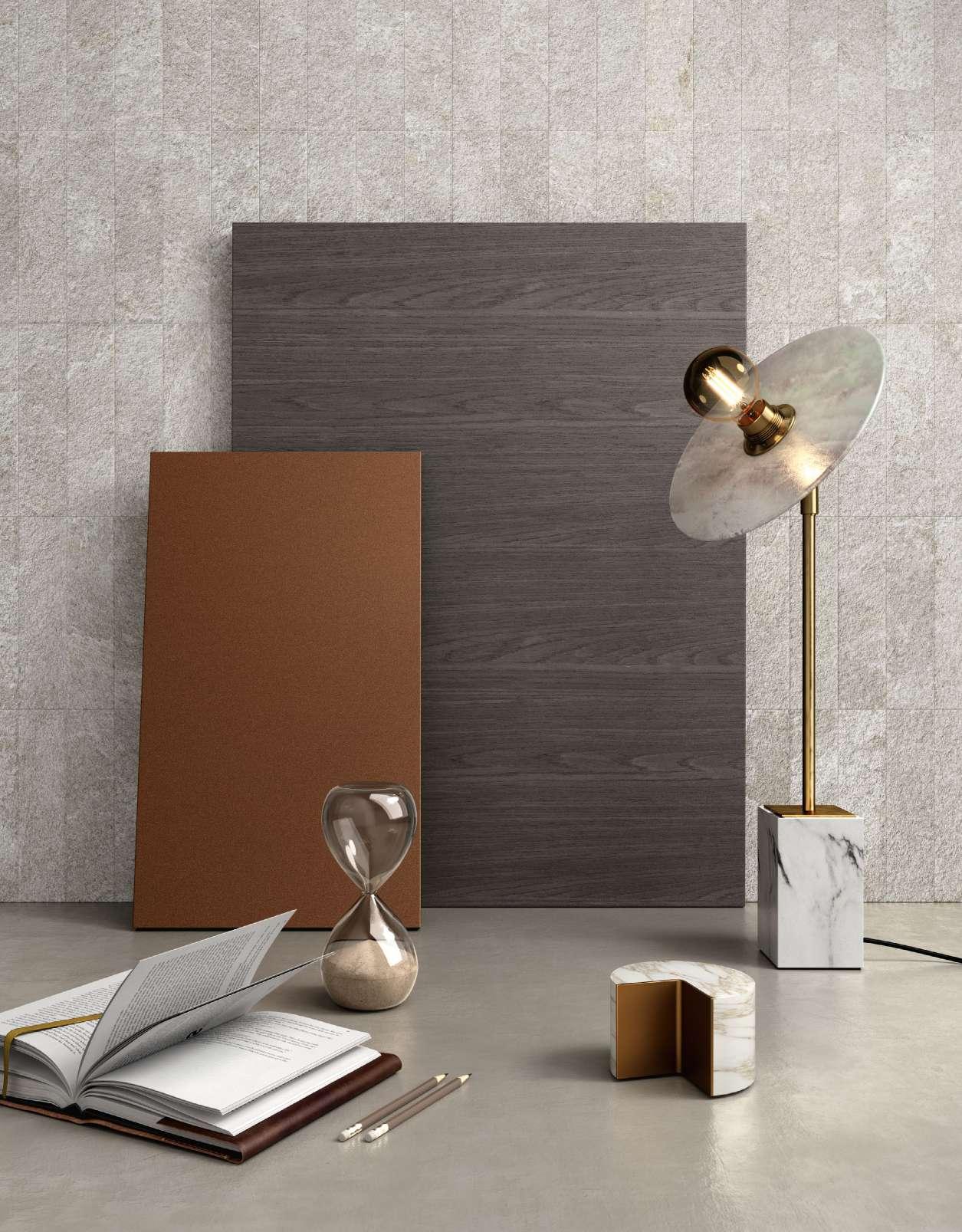 The surface effect, silky to the touch, gives a magnetic play of reflections, enhanced even more in its brushed version: a craftsmanship that returns the luxurious natural rough effect of wood.