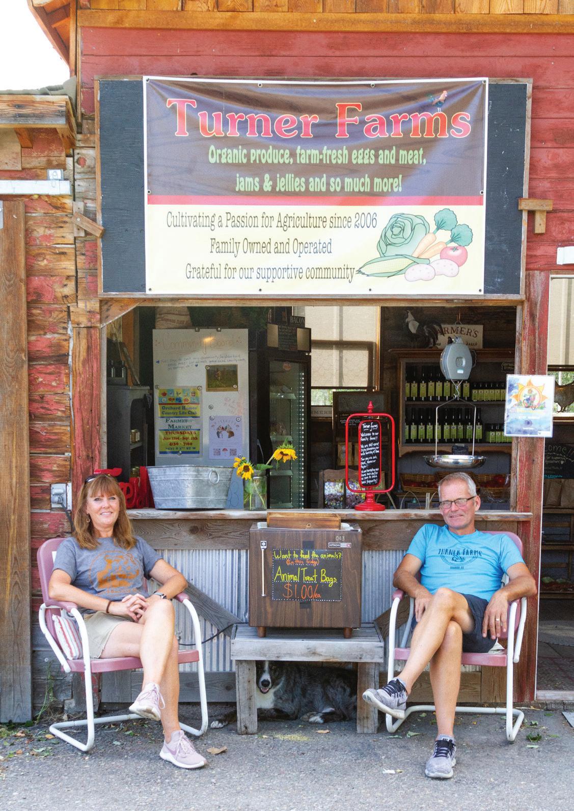 Jon and Erin Turner sit outside Turner Farms self-serve store in Missoula’s Orchard Homes neighborhood.Cattle Company with his brothers Logan and Gus.