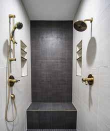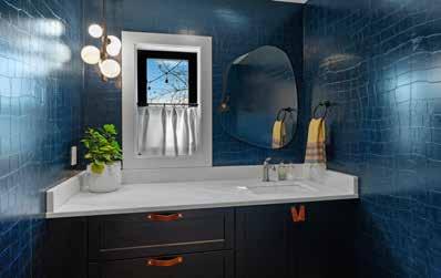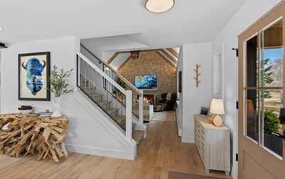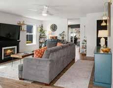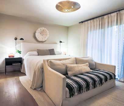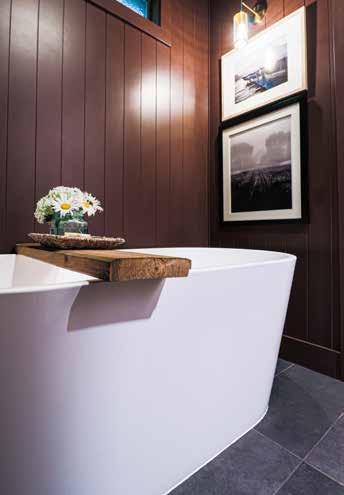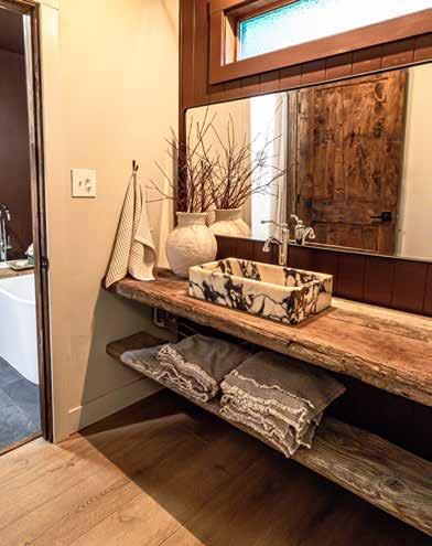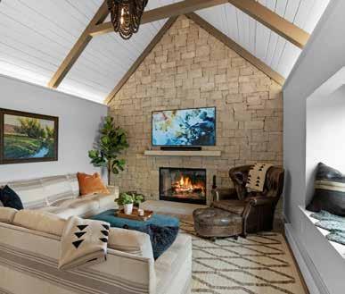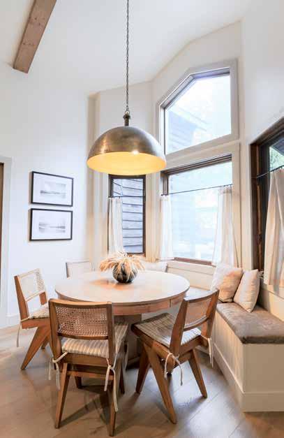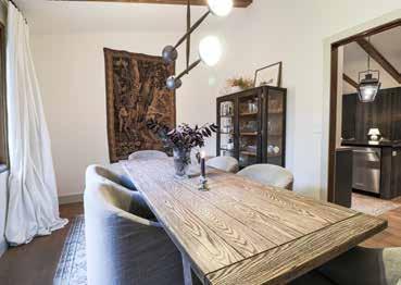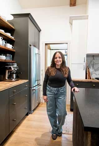 Throughout the remodel, Kristi worked closely with her husband, a contractor. She would sketch her ideas and he would build them, from shelving to custom trim work. “He’s more technical and I’m more creative,” she says. “It’s a good balance.” Even the wood beams in the living room, made from simple two-bysixes, were a collaborative effort. Stained and roughed up for texture, they add rustic warmth to the space without overwhelming it.