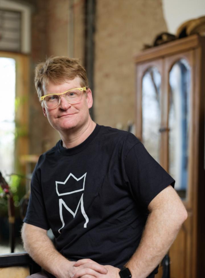 Tyler Kimball is the owner of Monarch Glass Studio where he and his team create custom stained glass for commercial, residential and public projects using a unique method. He is the only artist in the world who creates stained glass on a large scale from furnace glass. Whereas most stained glass artists use glass that is made in factories, Kimball creates the elements that go into the finished product. The studio stays busy, with recent projects including stained glass for a church in St. Louis, a bar in Manhattan and a newly renovated federal building in Washington, D.C. Kimball also completed the project “Making Connections” for the Lawrence Transit Facility in Kansas. The installation features lines running through circles, evoking the feeling of travel and creating connections along the way. Kimball praises the power of art to transform everyday places into something special.