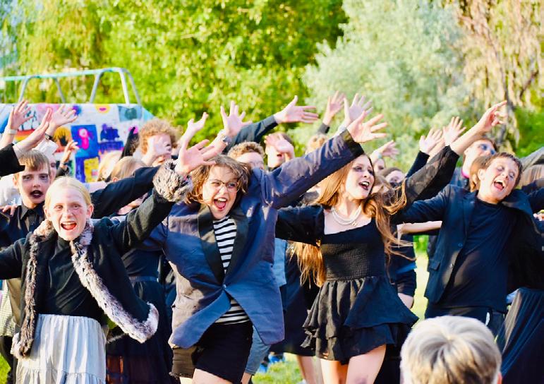 I am thinking back to a moment last summer when I was sitting in the outdoor amphitheater watching the end-of-session show as the sun was going down, and I realized I was totally present just taking it in: the rich characters that the kids in the scene had created over four weeks, the confidence they showed, the tricky comedic timing, the peals of giggles from the audience. All eyes were facing forward looking at one thing, having a communal experience, reacting together, laughing and applauding.
