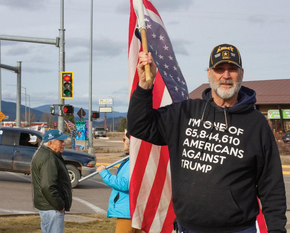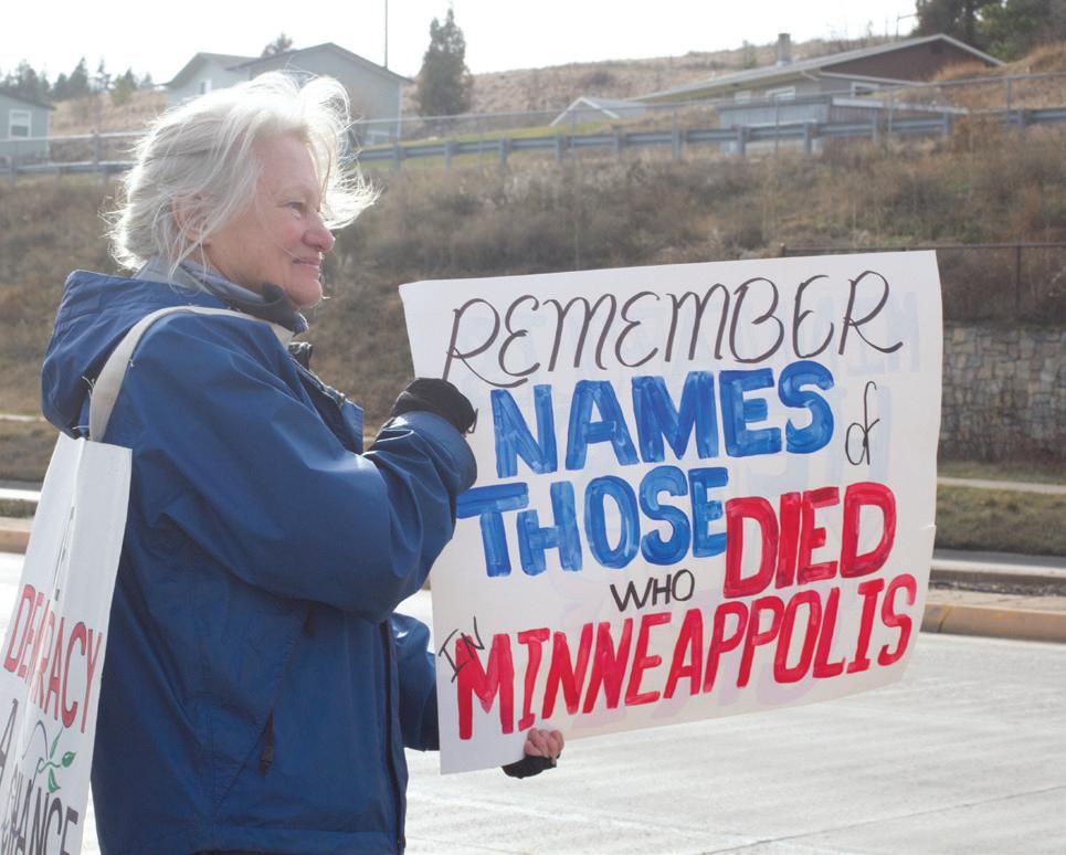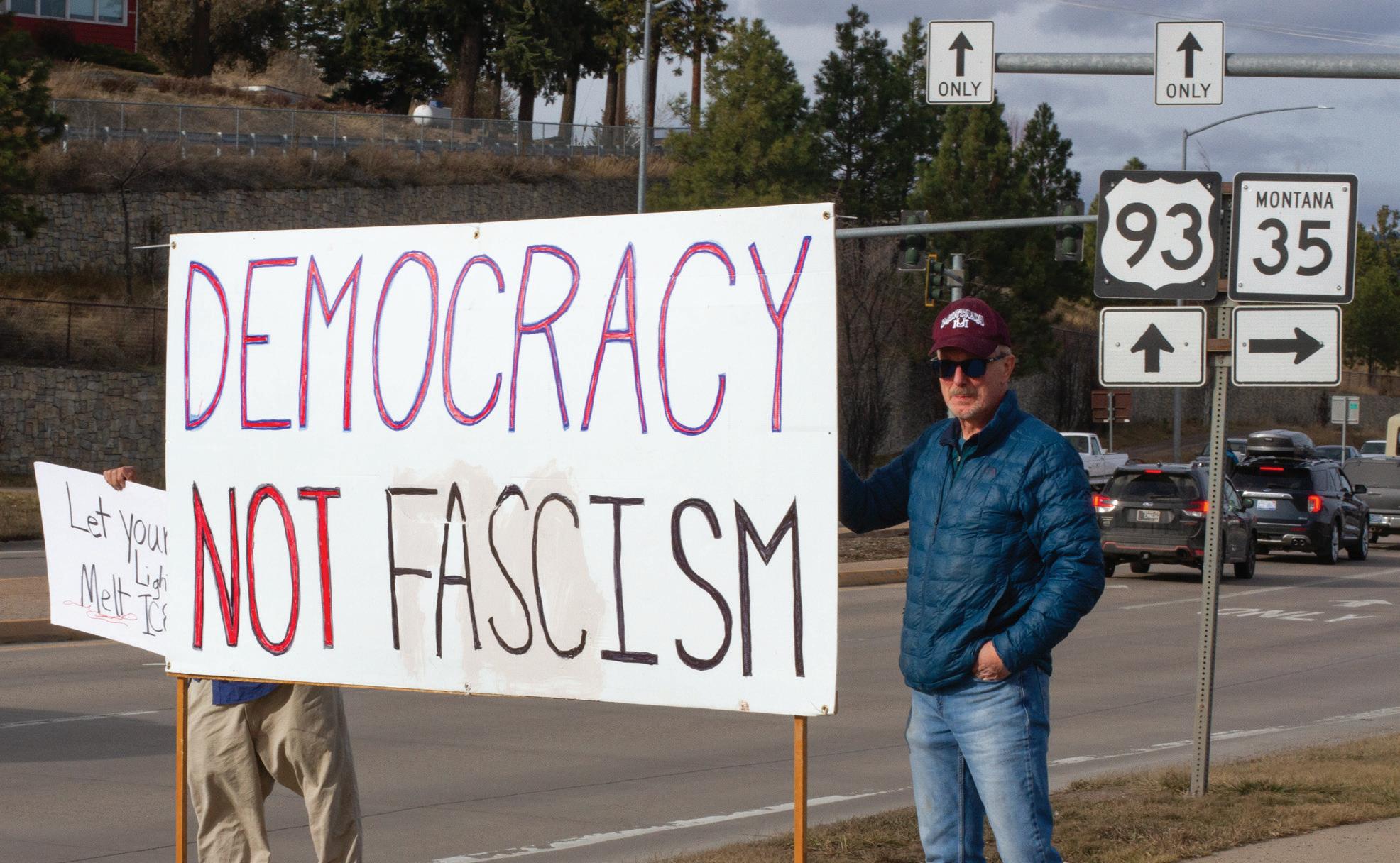 doesn’t fear protest dictators do.” One protester carried an upside-down flag — a sign of a nation in distress — marked with the words “failed state,” while others referenced the killing of Renee Good, another Minnesota resident, by ICE earlier this month, an event that spurred as many as 600 Missoulians to gather on Jan. 11, along with other rallies statewide.