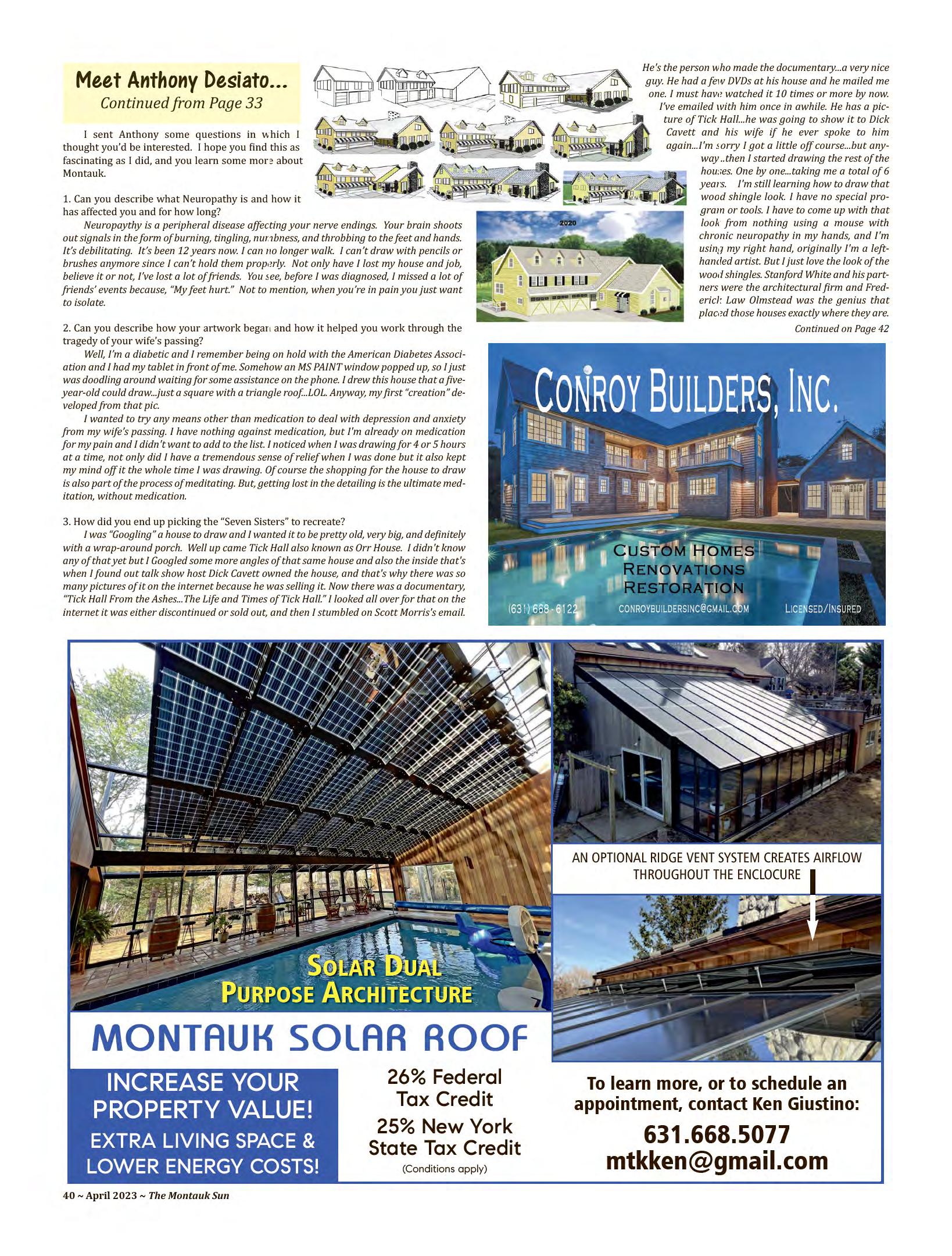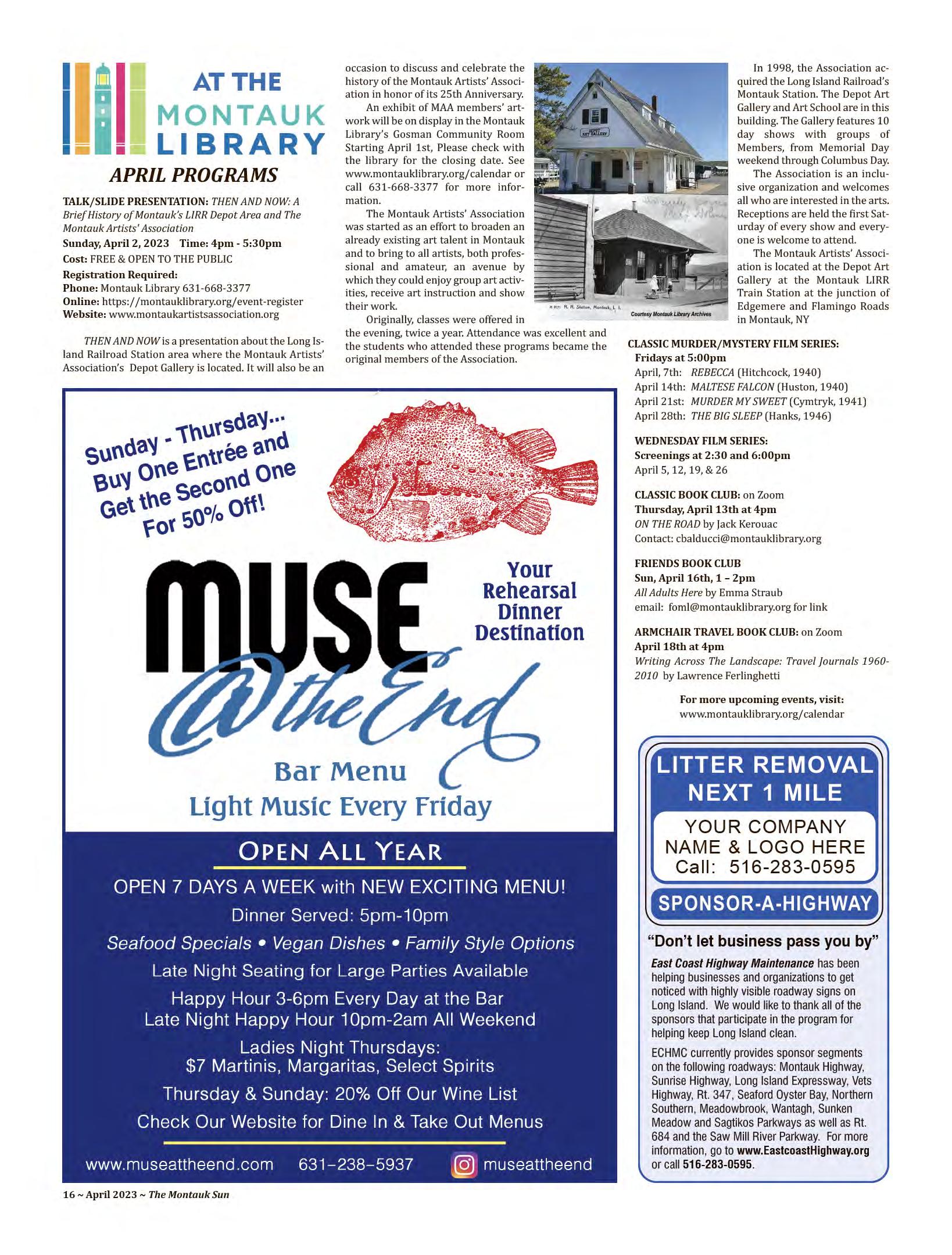 Do You Have a Job to Fill, a Car to Sell, an Apartment to Rent? Place a Classified in The Montauk Sun! Call: 631-668-5077 The Montauk Sun ~ April 2023