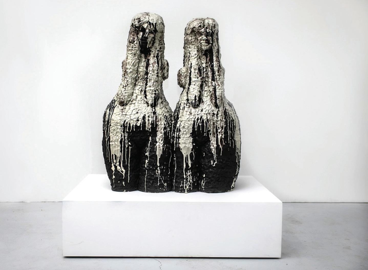 Raven Halfmoon (Caddo Nation, Choctaw, Delaware, Otoe-Missouria, b. 1991). Caddo Effigy Sisters, 2023. Ceramic, glaze. Museum purchase, Acquisition Fund, 2023.19.4. Image courtesy of the artist.