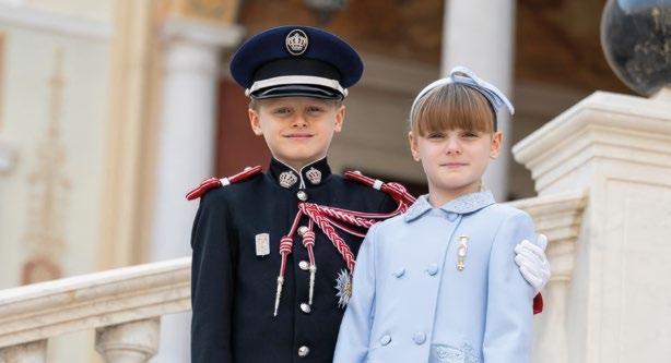 nerie des cloches de la Cathédrale, de tous les églises et chapelles de la Principauté et par les sirènes des bateaux et yachts ancrés dans les ports. Une grande joie se répand alors dans tout Monaco, dont les rues et les bâtiments sont décorés de drapeaux, et le Palais Princier est illuminé de rouge et de blanc. Le 11 décembre, c’est le Prince Albert, nouveau papa, enthousiaste, qui en fait l’annonce à travers un message diffusé à la télévision monégasque, remerciant le peuple pour son soutien, et Dieu pour cette grande joie. Il est intéressant de noter comment le prince s’adressait au monde en trois langues: en français, qui est sa langue officielle et celle de Monaco, en anglais qui est la langue de sa mère, l’actrice américaine Grace Kelly, et enfin aussi en dialecte monégasque: ce qui symbolise l’internationalité de la Principauté et en même temps son attachement à ses racines. De profondes traditions qui, aujourd’hui, dans leur dixième année, se transmettent aux jeunes héritiers de ce petit État vieux de plusieurs siècles: «Per a so’ benevurença, rengraçiamu Diu e ralegràmuse». «Pour sa bonté, remercions Dieu et réjouissonsnous!» s’est exclamé Albert à la télévision, et les médias locaux ont fait écho à ce message, écrivant abondamment sur cette nouvelle page qui a ouvert l’avenir de l’histoire du pays, y compris sa traduction en dialecte monégasque. Depuis la proclamation publiée par le L.A.S. Albert et Charlène sur le site du Palais Princier, «Le Prince Jacques, Honoré, Rainier, a la qualité de Prince Héréditaire. Selon l’usage historique établi par le traité de Péronne (1641), Il reçoit le titre de Marquis des Baux (en Provence). La Princesse Gabriella, Thérèse, Marie, deuxième enfant dans la ligne de succession, reçoit le titre de Comtesse de Carladès (en Auvergne).» Du côté des institutions gouvernementales, dans la nuit du 10 au 11 décembre, le maire de Monaco Georges Marsan a dit qu’il ira afficher dans la ville la proclamation expliquant le déroulement des événements: «Nous allons faire part à la population de la naissance avec un affichage en ville avec les prénoms des enfants. Il y aura toute une série de cérémonies. Nous allons demander aux Monégasques une contribution pour que les nou-