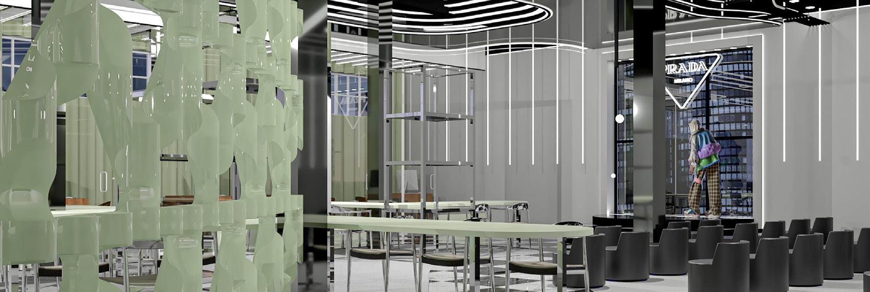 This project’s concept is “Future’s Craftmanship” which refers to a reinterpretation of the idea of manual craftmanship, the concept is partially inspired by the Prada Group. The Prada Group is a contemporary interpreter of changing scenes, is a company that seeks to push boundaries not only in fashion but in all art forms, architecture included. The design in this office does not only embraces the current Prada design style in it’s offices, stores and instalations, but aims to explore a new direction for the brand, and architecture in fashion.