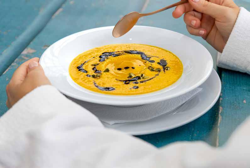 Hokkaidokürbissuppe 6,90 mit Kokosmilch und Kürbiskernöl