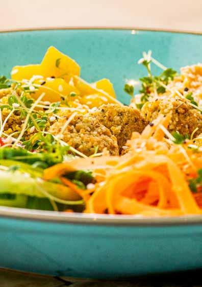 Poke-Bowl »Falafel« 3, D, E1, J 14,90 Couscous, Edamame Bohnen, Tomaten, Möhren, Gurke, Avocadocreme, Mangowürfel, Falafelbällchen, Hummus, Sesam, Kresse, Sesamöl & Sojasauce