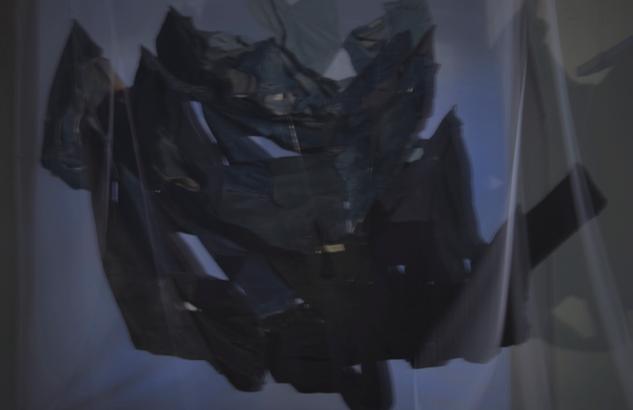 The installation is made up entirely of broken, damaged or simply used jeans that have been donated for the project through a collection campaign and will be donated to charity for use by those in need.