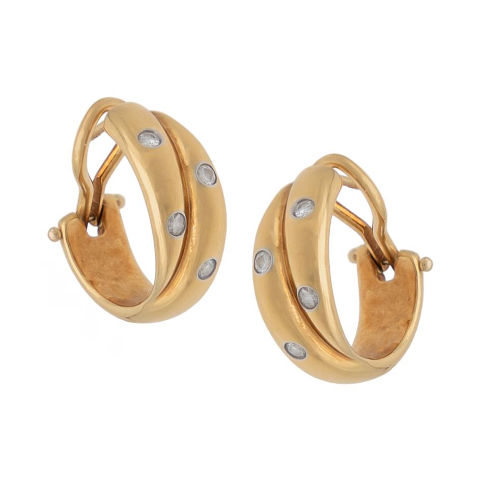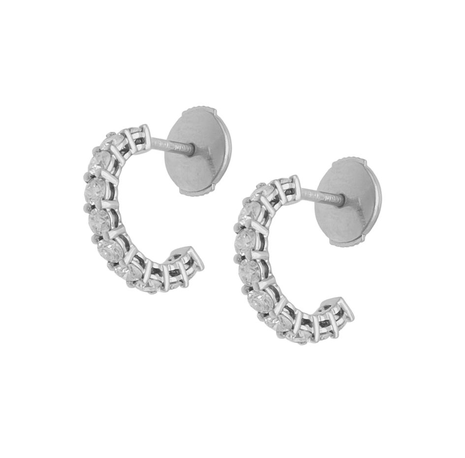 par arraCadas FIrmados y serIados “CarTIer” *CLassIC Hoop* CIrCa 2010 confeccIonaDos en oro blanco, con brIllantes melee 2.25 ctw. gramos 12.5, (contras DIferentes) calIDaD y Pesos aProxImaDos