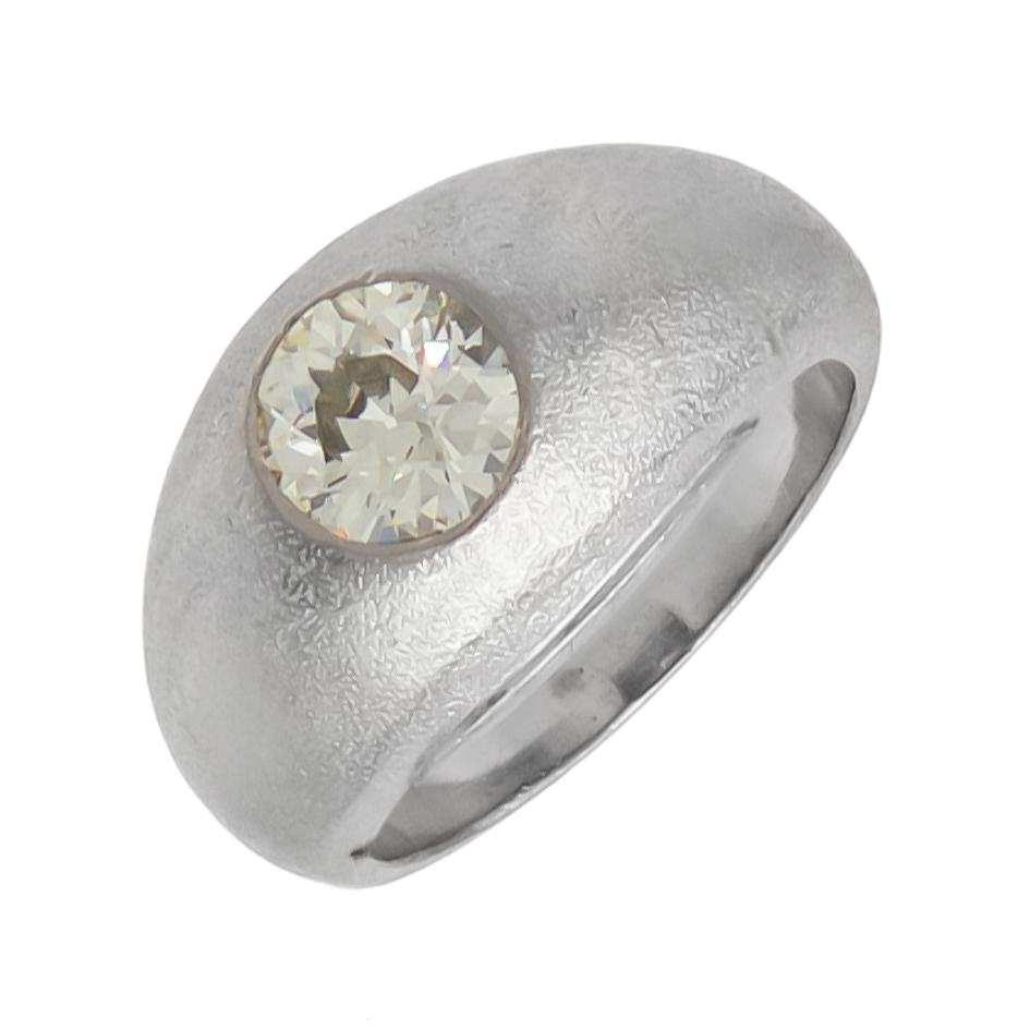 confeccIonaDo en oro blanco 18k, con brIllante talla antIgua 1.04 cts. vs/l-m, meDIDa 5, gramos 14.2, calIDaD y Pesos aProxImaDos