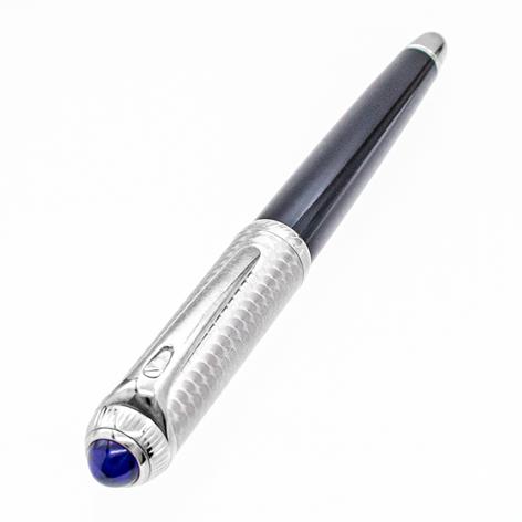 rollerball “cartIer” *r De cartIer Doue* serIaDa cuerPo en resIna negra, caPucHón en acero DecoraDo con guIllocHe, resIna color azul en caPeruza, francIa, rePuesto gastaDo en estucHe y PaPeles