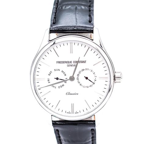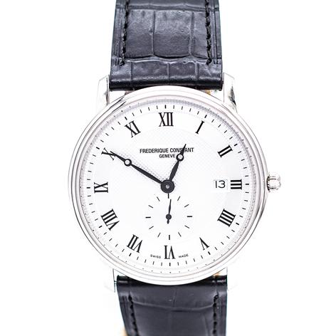 reloj Para caballero “freDerIque constant” *classIcs* referencIa fc259/260xb4/5/6 caja 40 mm en acero, Pulso PIel, carátula PlateaDa sIn cIfras, movImIento cuarzo, serIe 3470xxx, gramos 48.6, estaDo De conservacIón sIn usar, manual De usuarIo, estucHe y caja