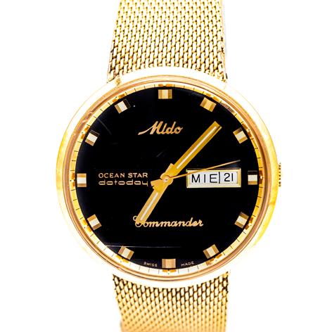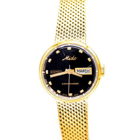 reloj Para caballero “mIDo” *commanDer* referencIa 8429 caja 37 mm y Pulso acero DoraDo, carátula negra sIn cIfras, movImIento automátIco, serIe 9939xxx, gramos 72.2, estaDo De conservacIón satIsfactorIo