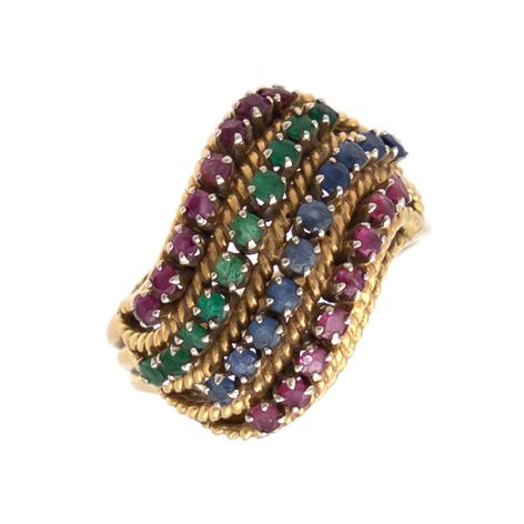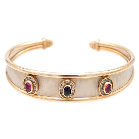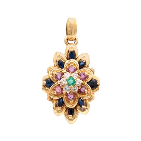 DIje oro amarIllo 18k, zafIros melee 0.24 ctw, rubíes melee 0.24 ctw, cIrconIas, gramos 5.0, calIDaD y Pesos aProxImaDos