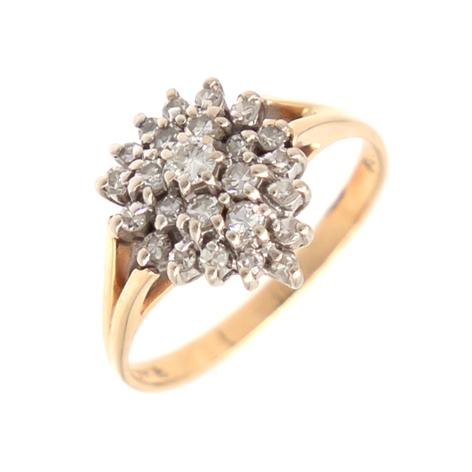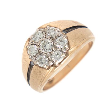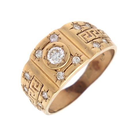 anIllo Para caballero oro amarIllo 14k, brIllante central 0.20 cts sI, I-k, brIllantes 0.78 ctw(6x0.13), vs, sI, meD. 8 1/2, gramos 12.1, calIDaD y Pesos aProxImaDos