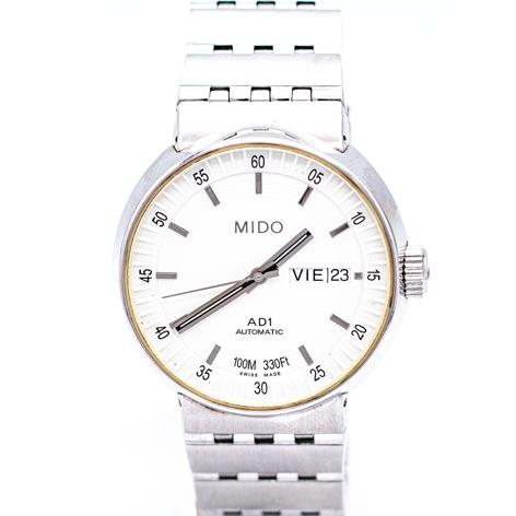 reloj Para caballero “mIDo” *all DIal* referencIa 8330 caja 38 mm y Pulso acero, carátula blanca, números arábIgos, movImIento automátIco, serIe 13Ha0222xxx, Pulso 16.5 cms., gramos 124.5, estaDo De conservacIón satIsfactorIo