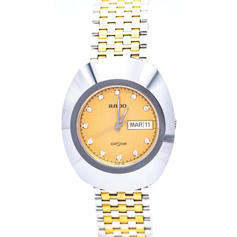 “raDo” *DIastar* referencIa 114.0391.3 caja 35x42 mm y Pulso en acero y acero DoraDo, carátula DoraDa sIn cIfras, movImIento cuarzo, serIe 03965xxx, gramos 99.7, estaDo De conservacIón satIsfactorIo