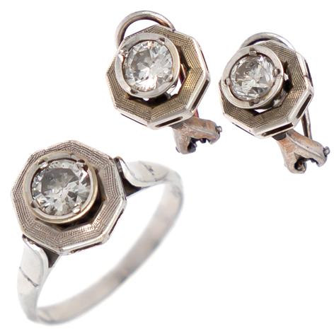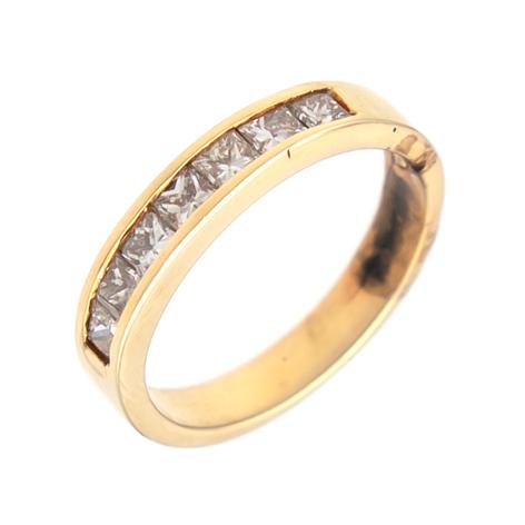 anIllo y Par De aretes oro amarIllo 18k, DIamantes melee talla PrIncess 0.95 ctw, meD. 6 1/2, gramos 11.1, calIDaD y Pesos aProxImaDos