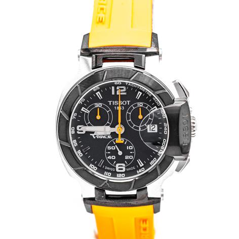 reloj Para Dama “tIssot” *t race* referencIa t 048217 a caja 36 mm en acero, Pulso caucHo, carátula negra, números arábIgos, cronógrafo, movImIento cuarzo, serIe 14bn0016xxx, gramos 81.0, estaDo De conservacIón satIsfactorIo