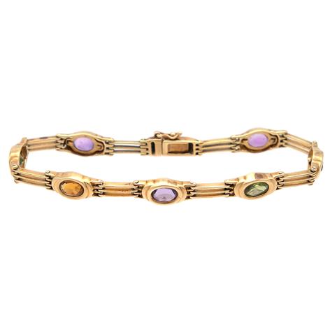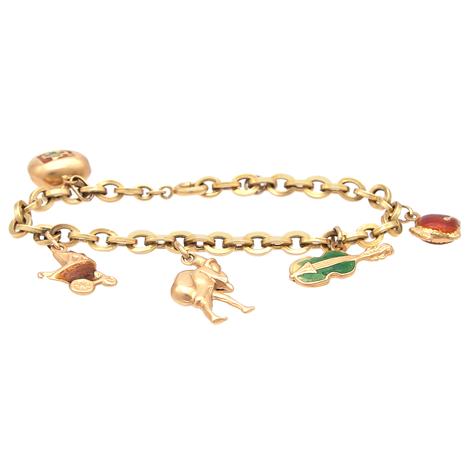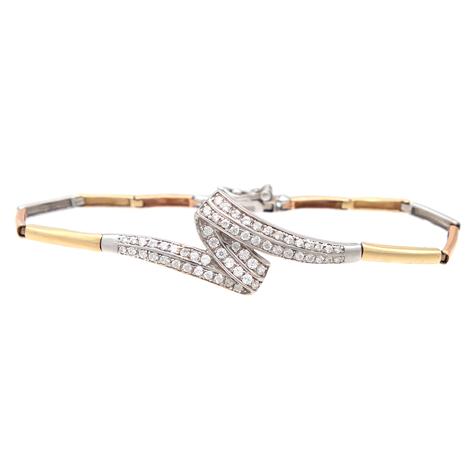 Pulsera Para Dama oro amarIllo 18k, con cIrconIas, esmalte, resIna (rota) cms. 17.0, gramos 4.8, calIDaD y Pesos aProxImaDos