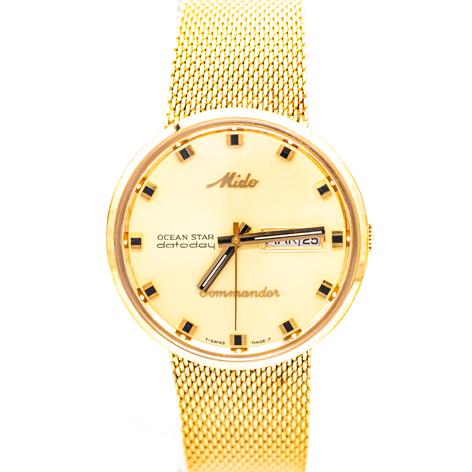 reloj Para caballero “mIDo” *commanDer* referencIa m8429.3.22.13 caja 37 mm y Pulso en acero DoraDo, carátula DoraDa sIn cIfras, serIe 9672xxx, gramos 73.5, estaDo De conservacIón satIsfactorIo