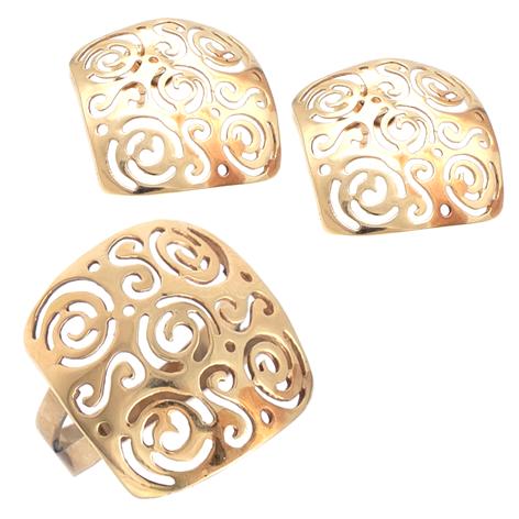 juego De argolla y Par De arracaDas oro amarIllo 14k oro, meD. 8, gramos 14.5, calIDaD y Pesos aProxImaDos