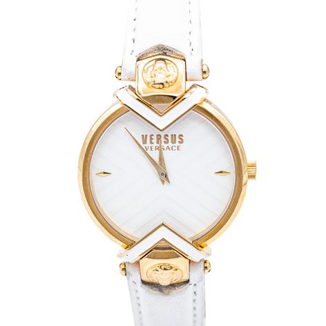 reloj Para Dama “versace” *mabIllon* referencIa vsPlH0219 caja 34 mm en acero DoraDo, Pulso PIel, carátula blanca sIn cIfras, movImIento cuarzo, número De serIe no vIsIble, estaDo De conservacIón satIsfactorIo, en caja
