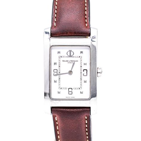 reloj Para Dama “baume & mercIer” *HamPton* referencIa 65434 caja 24x30 mm en acero, Pulso PIel, carátula blanca, números arábIgos, movImIento cuarzo, gramos 35.6, estaDo De conservacIón satIsfactorIo