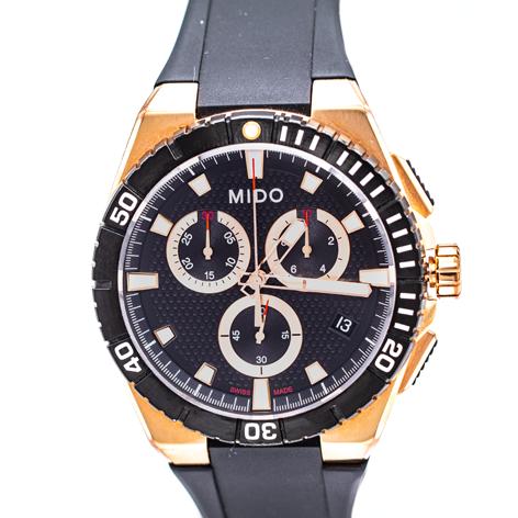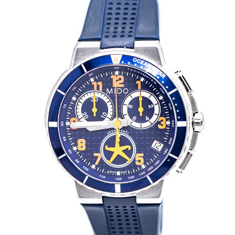 reloj Para caballero “mIDo” *ocean star* referencIa m002617 a caja 40 mm en acero, Pulso caucHo, carátula azul, números arábIgos, cronógrafo, movImIento cuarzo, serIe 10bg0183xxx, gramos 104.5, estaDo De conservacIón satIsfactorIo