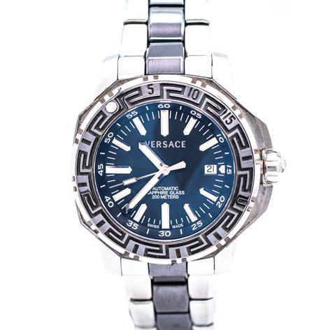 reloj Para caballero “versace” caja 47 mm y Pulso en acero y cerámIca con Detalle, carátula negra sIn cIfras, movImIento automátIco, serIe k107xxx, gramos 207, estaDo De conservacIón satIsfactorIo