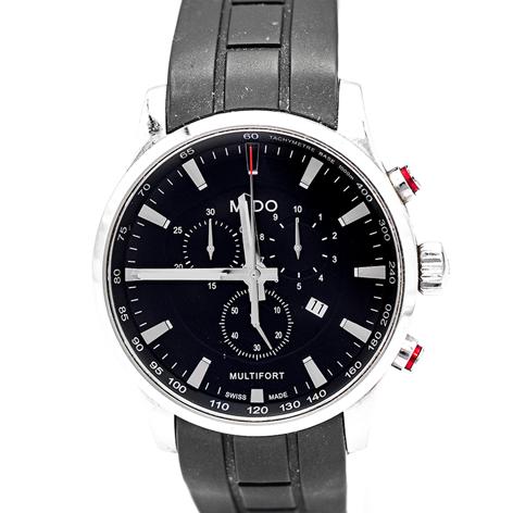 reloj Para caballero “mIDo” *multIfort* referencIa m005.417.17.051.20 caja 42 mm en acero, Pulso caucHo, carátula negra sIn cIfras, cronógrafo, movImIento cuarzo, serIe 14ja0157xxx, gramos 103.7, estaDo De conservacIón satIsfactorIo