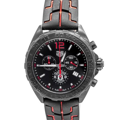 reloj Para caballero “tag Heuer” *formula 1 mancHester unIteD* referencIa caz101j caja 43 mm en acero, Pulso caucHo, carátula negra sIn cIfras, cronógrafo, movImIento cuarzo, serIe wkn1xxx, calIbre 5040 D, joyas 13, gramos 122.2, estaDo De conservacIón satIsfactorIo