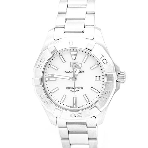 reloj Para Dama “tag Heuer” *aquaracer* referencIa wbD1311.ba0740 caja 32 mm y Pulso en acero, carátula maDre Perla sIn cIfras, movImIento cuarzo, serIe wae1xxx, gramos 86.4, Pulso 15 cms., estaDo De conservacIón satIsfactorIo