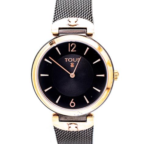 reloj Para Dama “tous” *s-mesH bIcolor* caja 36 mm acero rosaDo, Pulso acero negro, carátula negra InDIcaDores mIxtos, movImIento cuarzo, serIe 70 035 0xx x, gramos 56.6, estaDo De conservacIón sIn usar, en caja