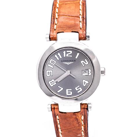 reloj Para Dama “longInes” *Dolce vIta* referencIa l5 505 4 caja 28 mm en acero, Pulso PIel, carátula grIs , números arábIgos, movImIento cuarzo, gramos 22.4, estaDo De conservacIón satIsfactorIo