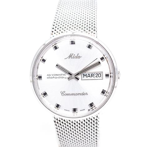 reloj Para caballero “mIDo” *commanDer* referencIa m8429.4.21.13 caja 37 mm y Pulso en acero, carátula PlateaDa sIn cIfras, movImIento automátIco, serIe 10478xxx, gramos 80.0, estaDo De conservacIón satIsfactorIo