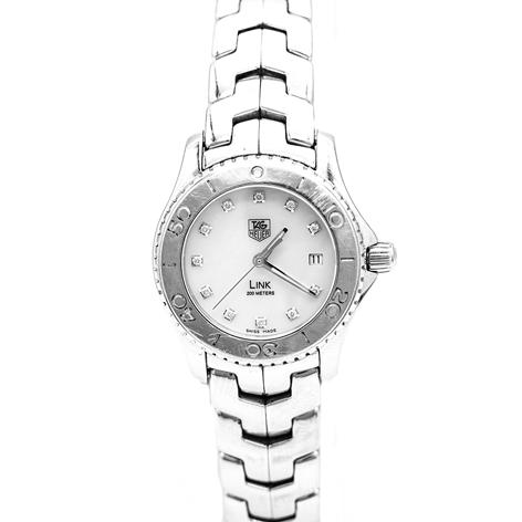reloj Para Dama “tag Heuer” *lInk* referencIa wj13190 caja 27 mm y Pulso en acero, carátula maDre Perla, InDIcaDores De DIamante, movImIento cuarzo, serIe rel0xxx, gramos 62.5, estaDo De conservacIón satIsfactorIo