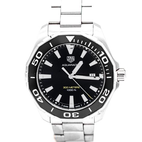 reloj Para caballero “tag Heuer” *aquaracer* referencIa way101a ba0746 caja 43 mm y Pulso en acero, carátula negra sIn cIfras, movImIento cuarzo, serIe wmH4xxx, calIbre 955 112, joyas 7, gramos 166.0, estaDo De conservacIón satIsfactorIo
