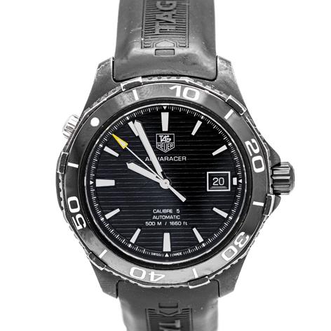 reloj Para caballero “tag Heuer” *aquaracer* referencIa wak2180 caja 41 mm en acero PvD, Pulso caucHo con Detalle, carátula negra sIn cIfras, movImIento automátIco, serIe ePg4xxx, calIbre 5, joyas 26, gramos 89.6, estaDo De conservacIón satIsfactorIo