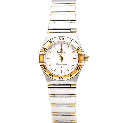 reloj Para Dama “omega” *constellatIon* ref 1362.70.00/795.1203 caja 22.5 mm y Pulso acero/oro, carátula blanca, InDIcaDores sIn cIfras, mov cuarzo, serIe 55659xxx, cal. 1456, joyas 6, estaDo De conservacIón bueno