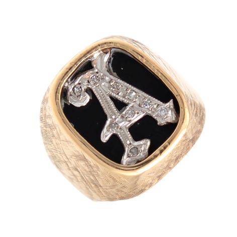 anIllo Para Dama confeccIonaDo en oro amarIllo 18k, esmalte azul, DIamante melee 0.006 cts, meD. n° 7.5, grs. 9.5. calIDaDes y Pesos aProxImaDos