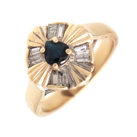 anIllo Para Dama confeccIonaDo en oro amarIllo 10k y vIstas PlatInaDas, zafIro sIntetIco 2.55 cts, DIamantes melee 0.01 ctw, meD. n°10, grs. 3.8. calIDaDes y Pesos aProxImaDos