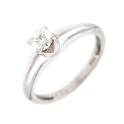 anIllo solItarIo confeccIonaDo en oro blanco 14k, brIllante 0.15 cts vs/I-k, meD. n° 5, grs. 1.1. calIDaDes y Pesos aProxImaDos
