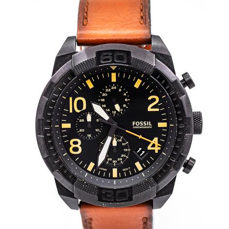 reloj Para caballero “fossIl” ref fs5714 caja 50 mm acero PavonaDo, Pulso PIel, carátula negra, InDIcaDores mIxtos, mov cuarzo, estaDo De conservacIón bueno