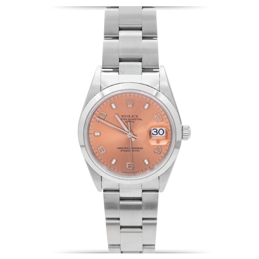caja 34 mm y brazalete oyster acero, carátula salmón, InDIcaDores con barras y números arábIgos, mov. automátIco n° 3 8845062, comPlIcacIones: fecHaDor, reserva De marcHa 48 Horas, serIe: P698xxx, cal: 3135, joyas: 31, grs. 95.9, con cIerre oysterclasP. eDo. De conservacIón: satIsfactorIo