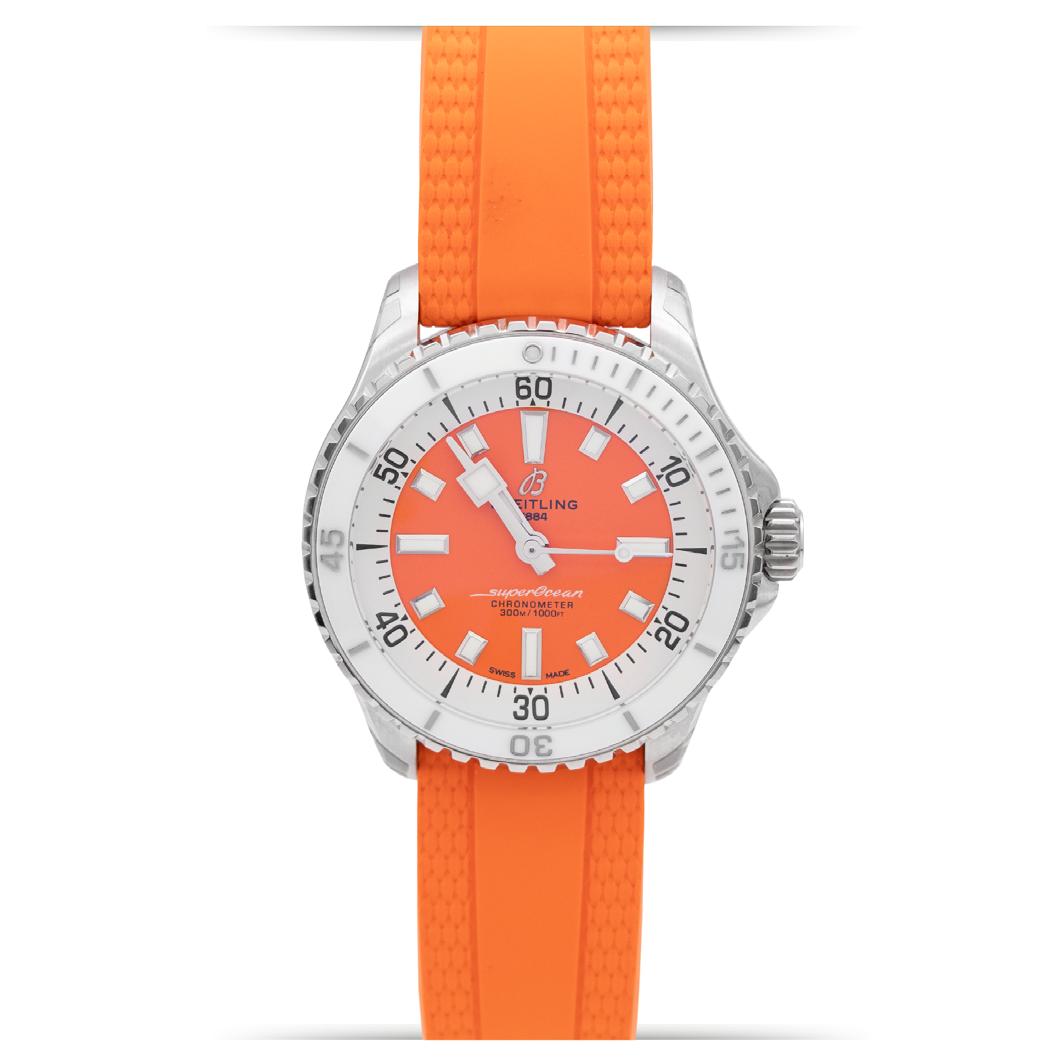 reLoJ para CabaLLero “TaG Heuer” *aQuaraCer 500m* reF: WaJ1113.FT6015 CIrCa 2013 caja 43 mm en acero, brazalete caucHo, caratula naranja, bIsel gIratorIo, InDIcaDores con barras, mov. cuarzo, comPlIcacIones: fecHaDor, serIe: ees2xxx, cal: eta 955.112, joyas: 7, grs. 126.4, eDo. De conservacIón: satIsfactorIo