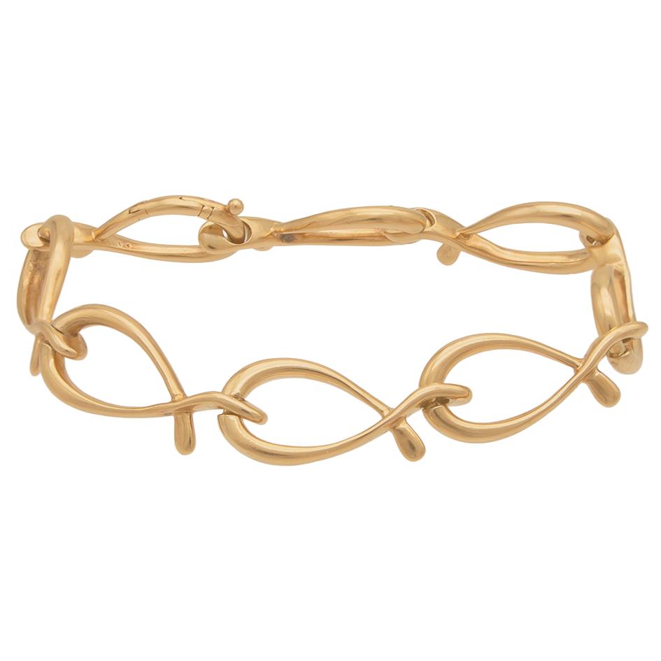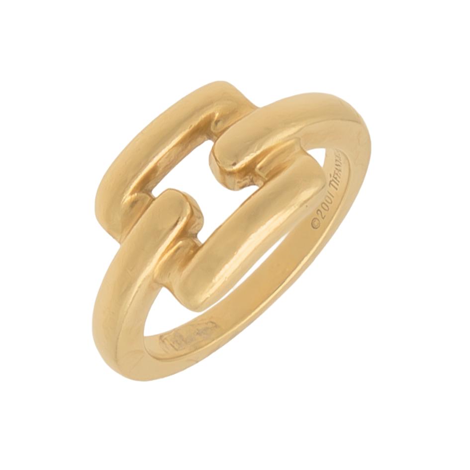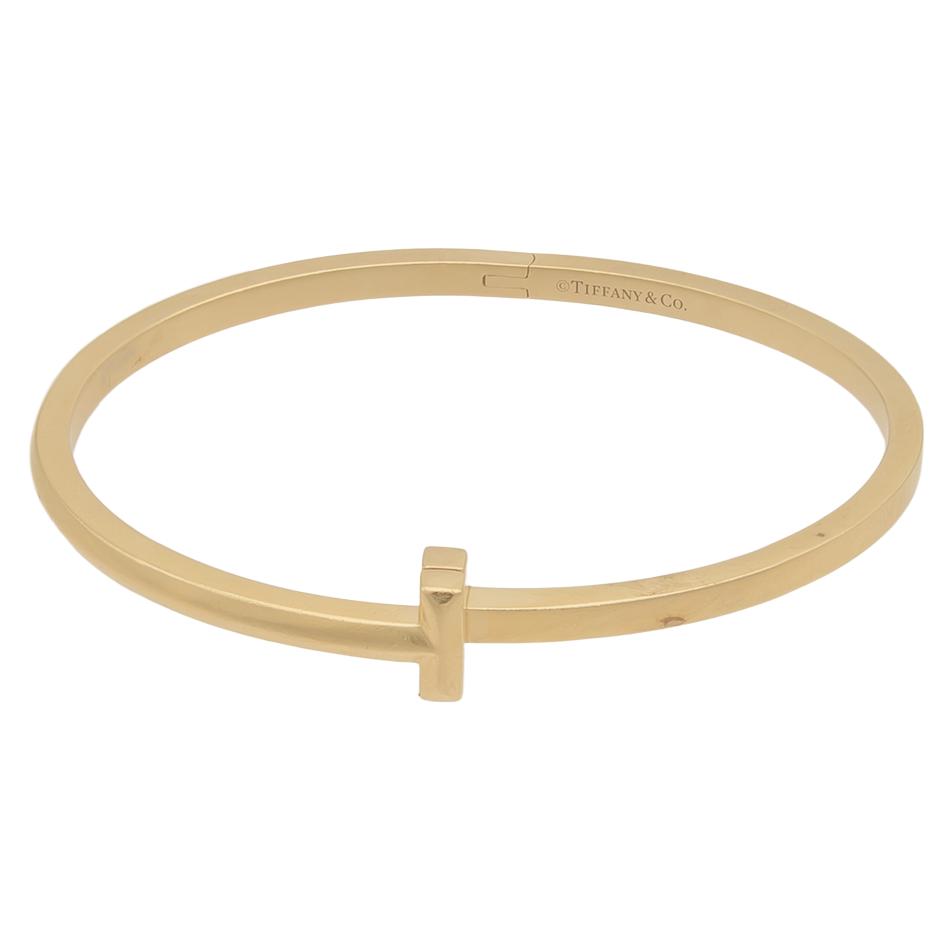 puLsera esTreCHa FIrma “TIFFany & Co” *T1* confeccIonaDo en oro amarIllo, con bIsagra, Pulso granDe De 15.9-17.1 cm, grs. 23.6, calIDaDes y Pesos aProxImaDos. Detalle en metal y brocHe retocaDo